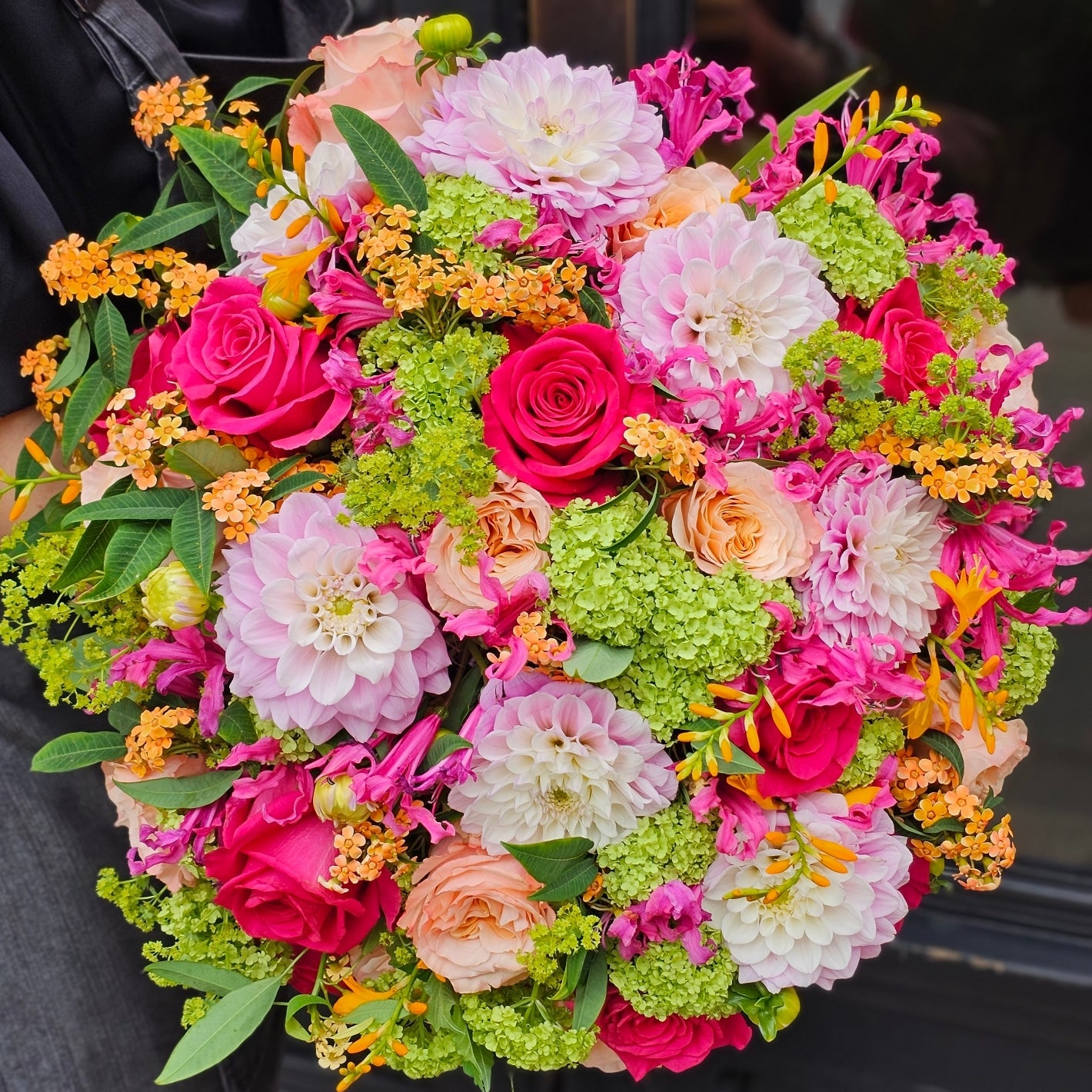 Experience the magic of summer with our captivating floral creations. Add a splash of color  to your home, office, or event with our eye-catching arrangements. Let the vibrant shades of green, orange, and pink flowers ignite your senses and uplift your spirits. Embrace the season in full bloom with our unforgettable summer hand-tied bouquets.